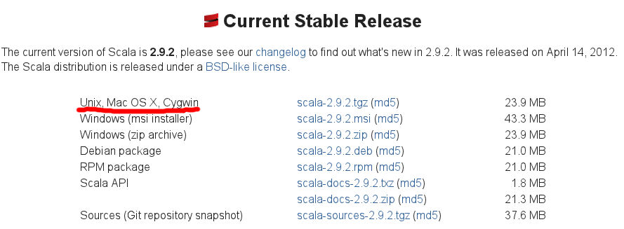 Во-первых, необходимо загрузить дистрибутив Scala, который можно найти на сайте Scala. На момент написания статьи последняя версия языка - 2.9.2. Разархивируйте полученный дистрибутив. Теперь необходимо настроить Scala для дальнейшего использования.