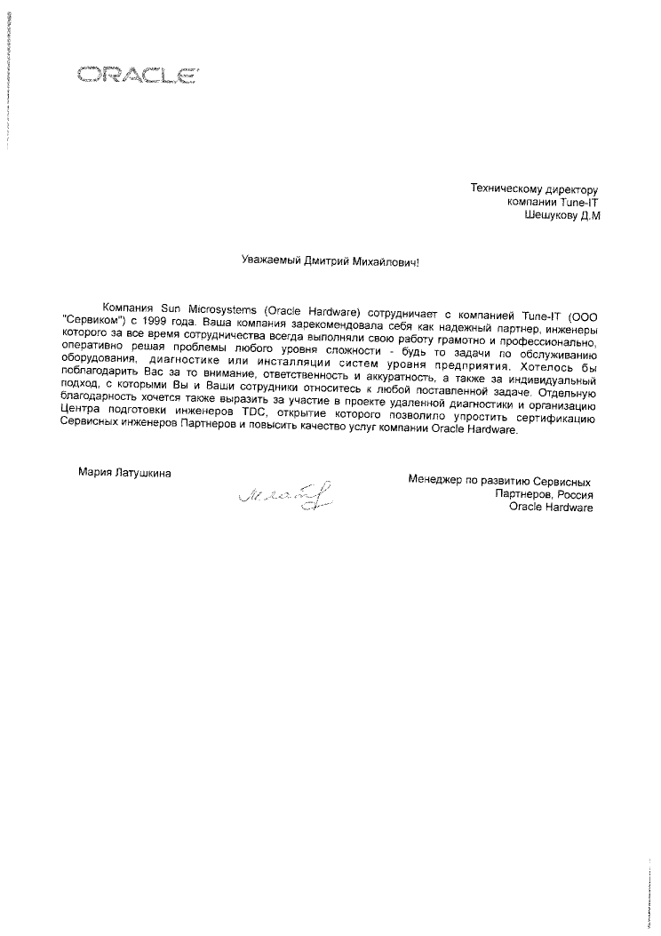 ...благодарность за участие в удаленной диагностике оборудования заказчиков и организацию Центра подготовки инженеров TDC, открытие которого позволило локализовать сертификацию ...
