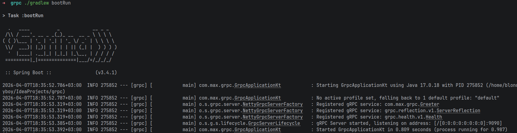 Подводя итог, можно сказать, что Spring gRPC успешно решает главную задачу - делает интеграцию gRPC в Spring Boot максимально бесшовной и нативной. Как показал тест, весь процесс настройки сводится к подключению стартера и созданию класса с аннотацией @Service. Автоматическое обнаружение сервисов и привычная работа через DI позволяют сосредоточиться на бизнес-логике, не отвлекаясь на инфраструктурные сложности.