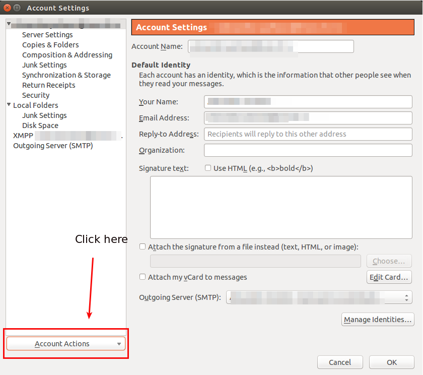 В появившемся окне необходимо нажать на Account Actions и выбрать пункт Add Chat Account