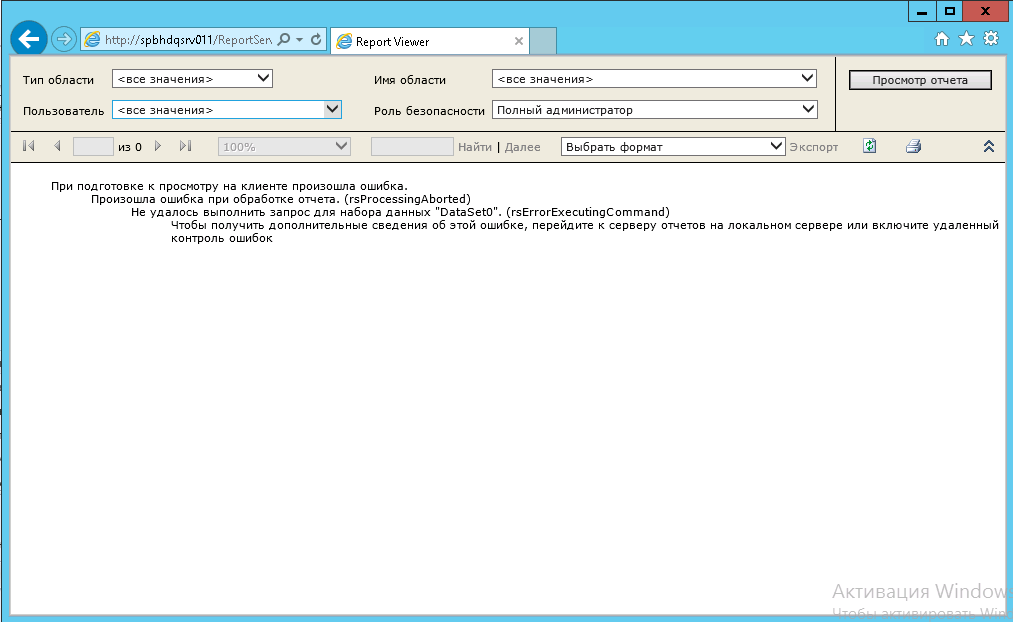 Произошла ошибка при обработке отчета. (rsProcessingAborted)