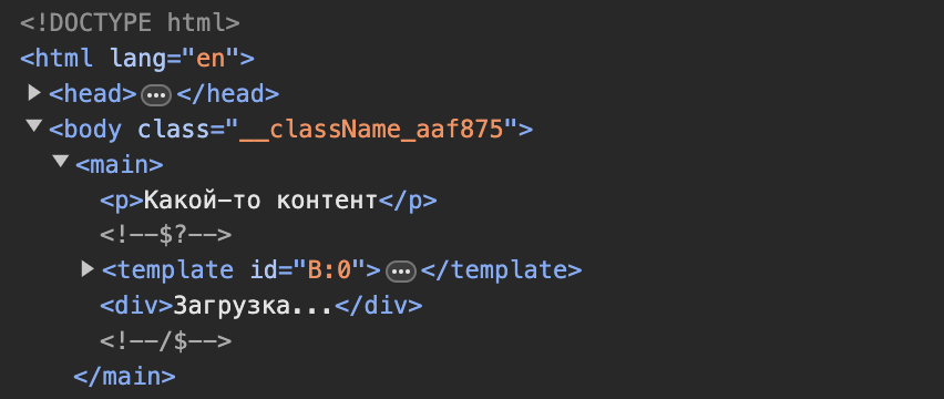 Как нетрудно догадаться, это отрендеренный серверный компонент и скрипт для его вставки в нужное место на странице.